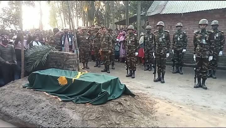 সুদানে জাতিসংঘের (ইউএন) শান্তিরক্ষা মিশনের ঘাঁটিতে সন্ত্রাসী ড্রোন হামলায় নিহত বাংলাদেশি শান্তিরক্ষী লন্ড্রী কর্মচারী সবুজ মিয়ার মরদেহ তার গ্রামের বাড়ি গাইবান্ধার পলাশবাড়ীতে রাষ্ট্রীয় মর্যাদায় দাফন সম্পন্ন হয়েছে।