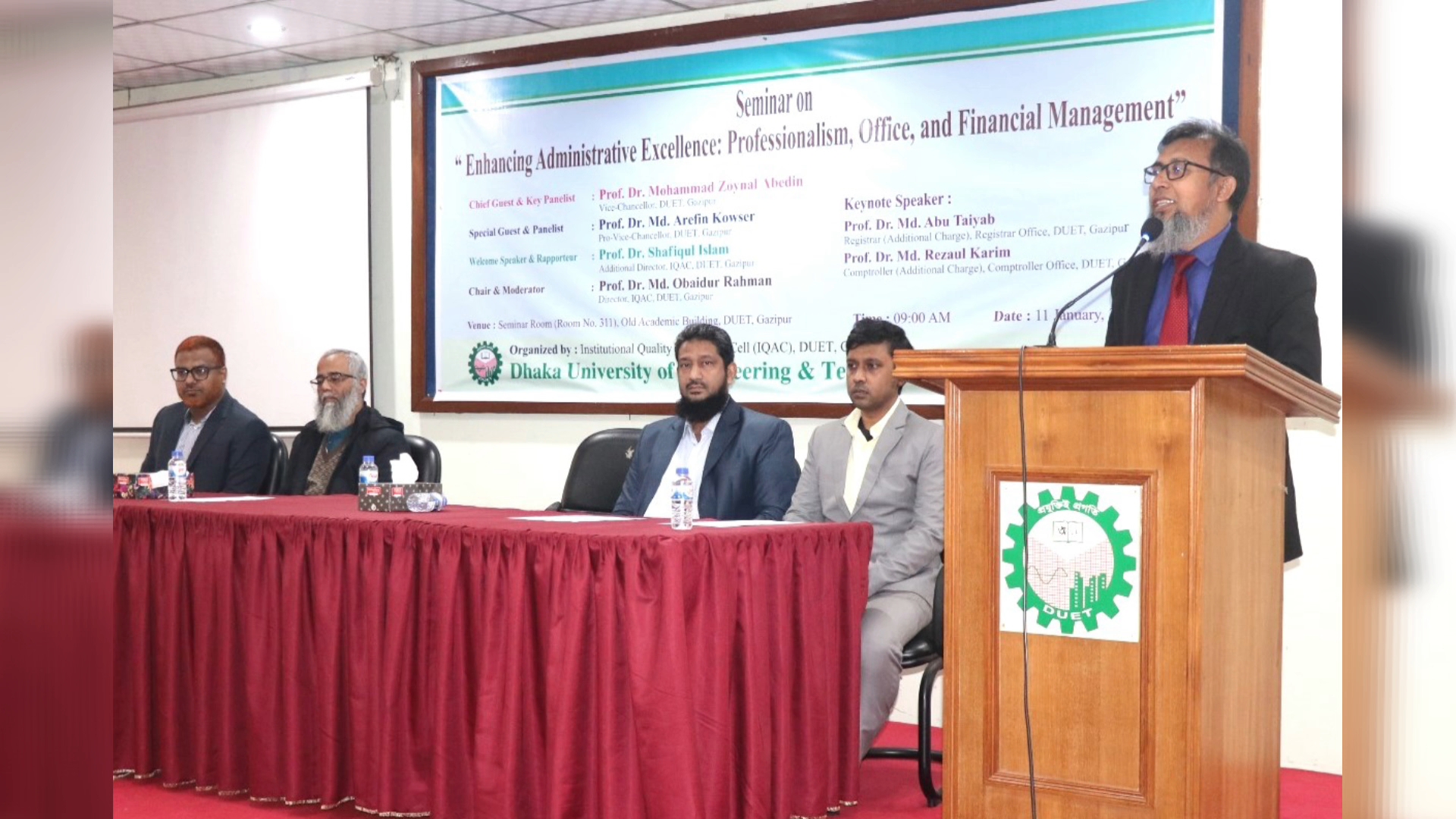গাজীপুর প্রতিনিধি- ঢাকা প্রকৌশল ও প্রযুক্তি বিশ্ববিদ্যালয় (ডুয়েট), গাজীপুর-এর বিভিন্ন দপ্তর ও অফিসের কর্মকর্তাদের দক্ষতা বৃদ্ধিকরণের লক্ষ্যে “এনহেন্সিং অ্যাডমিনিস্ট্রেটিভ এক্সিলেন্স